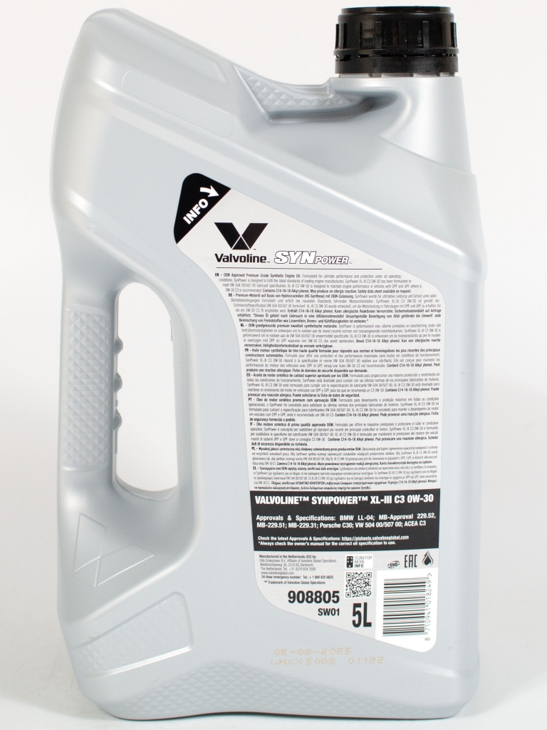Главная / Моторные масла / Моторное масло Valvoline SYNPOWER XL-III C3 0W-30, 5л